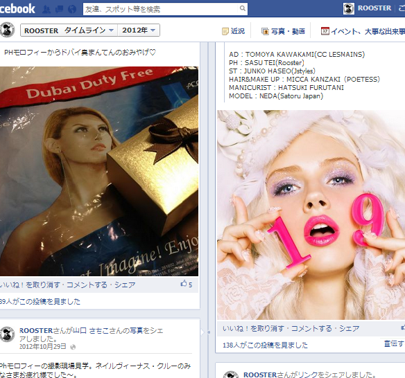 ROOSTERのfacebookpage毎日更新中です。 facebookpageだけでしか発信している情報もありますので是非ちぇくしてみてください。 ROOSTER facebookpage